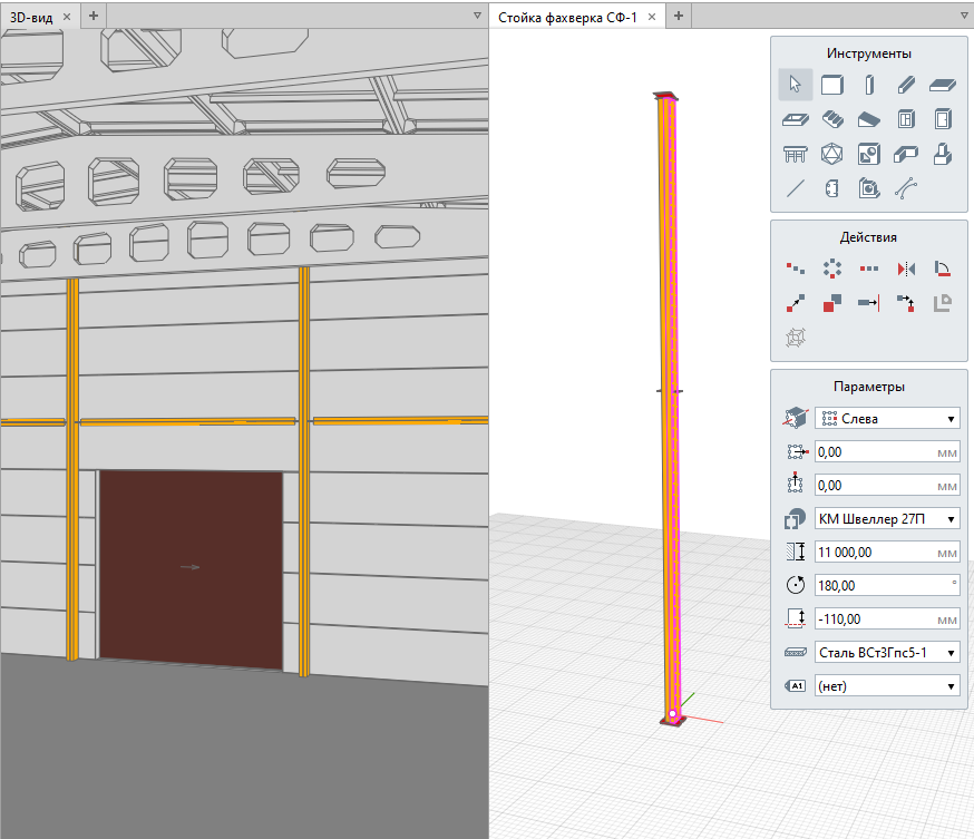 Металлические колонны Металлические колонны выполняются как правило инструментами Колонна, Балка и Пластина в Сборке. Посмотрите пример в проекте Workshop из установочной папки Samples. По умолчанию путь: C:\Program Files\Renga\Samples.