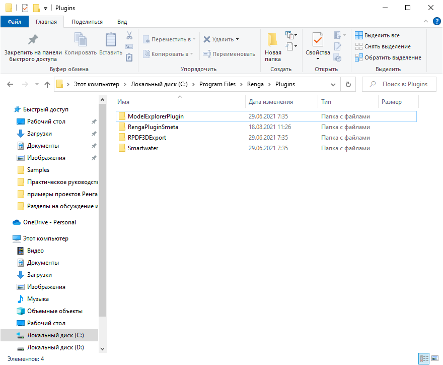 •  Скачайте и распакуйте архив ModelExplorerPlugin.zip в папку C:\Program Files\Renga\Plugins, если папки нет, создайте её: