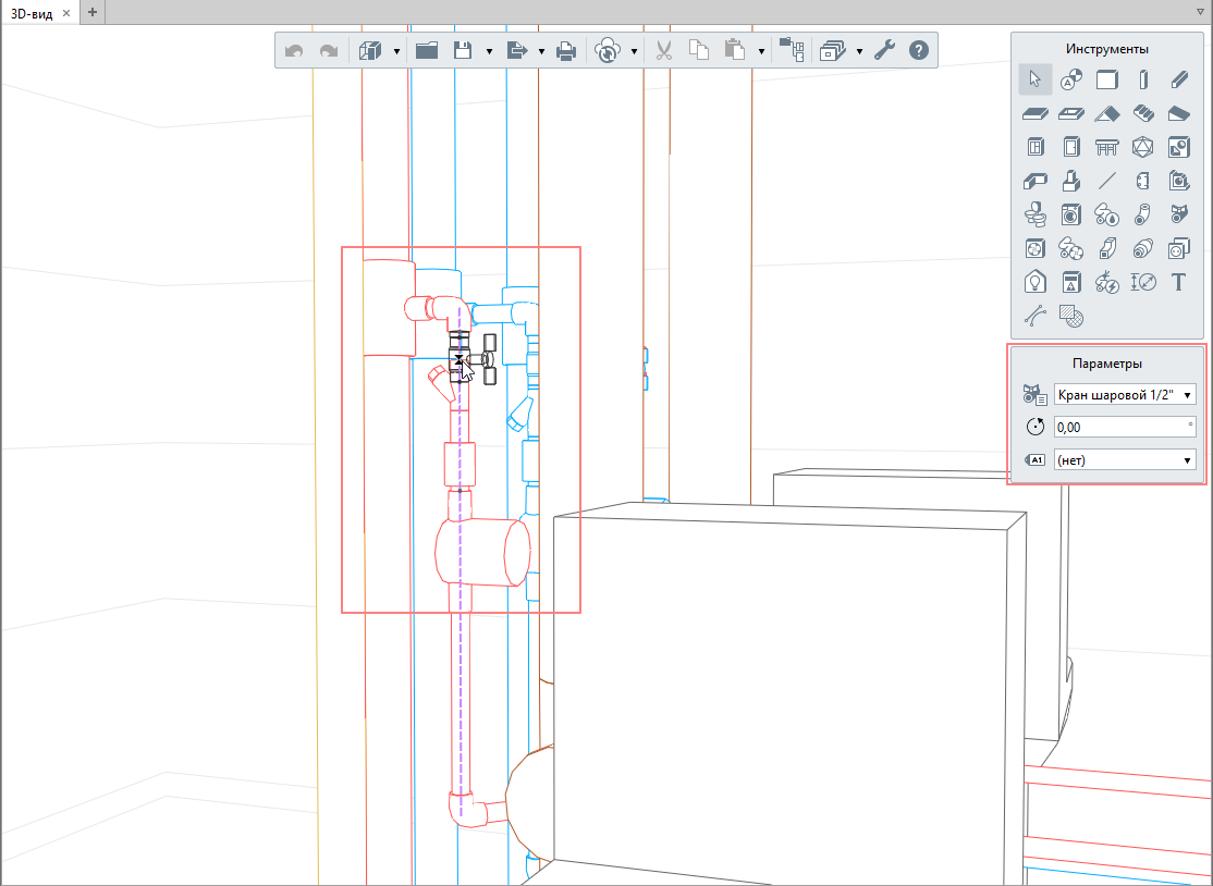Трубы, воздуховоды или электрические линии, также как детали и аксессуары, могут быть размещены или заменены на трассе после трассировки.