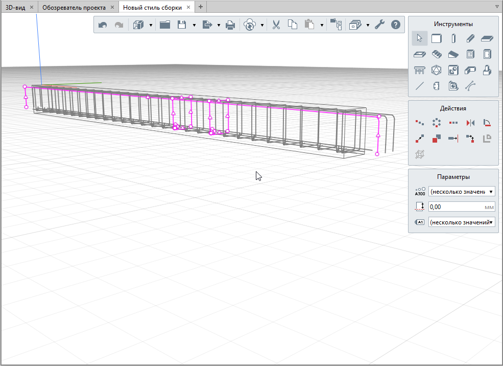3. Выделите объекты и на панели Действия выберите Создать арматурные детали