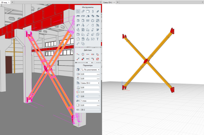Связи Связи выполняются, как правило, инструментами Балка и Пластина в Сборке. Посмотрите пример в проекте Workshop из установочной папки Samples. По умолчанию путь: C:\Program Files\Renga\Samples.